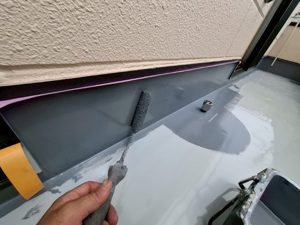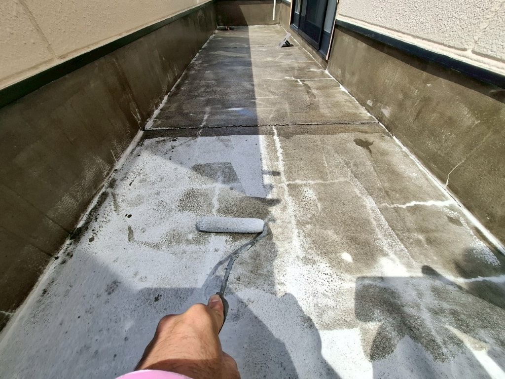 1層目のウレタン防水材をローラーで丁寧に塗布。
