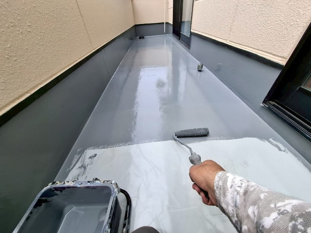 最後にトップコートを塗布し、紫外線や風雨から防水層を保護。