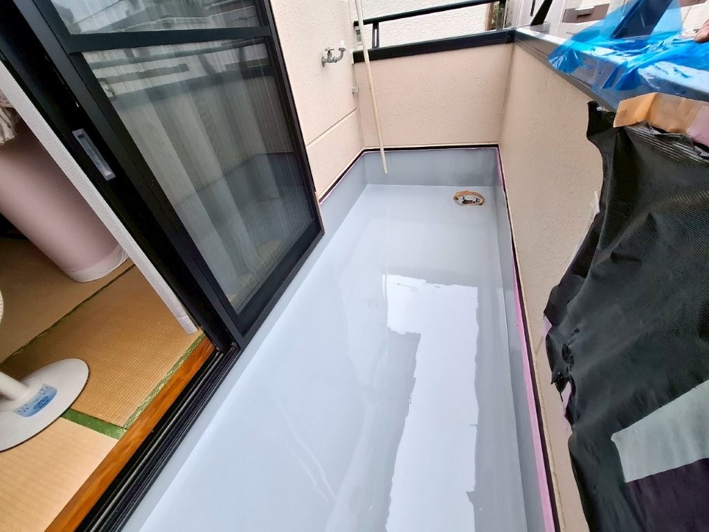 | 施工内容 | ベランダウレタン防水工事(下地処理+ウレタン2層塗布+トップコート仕上げ) |