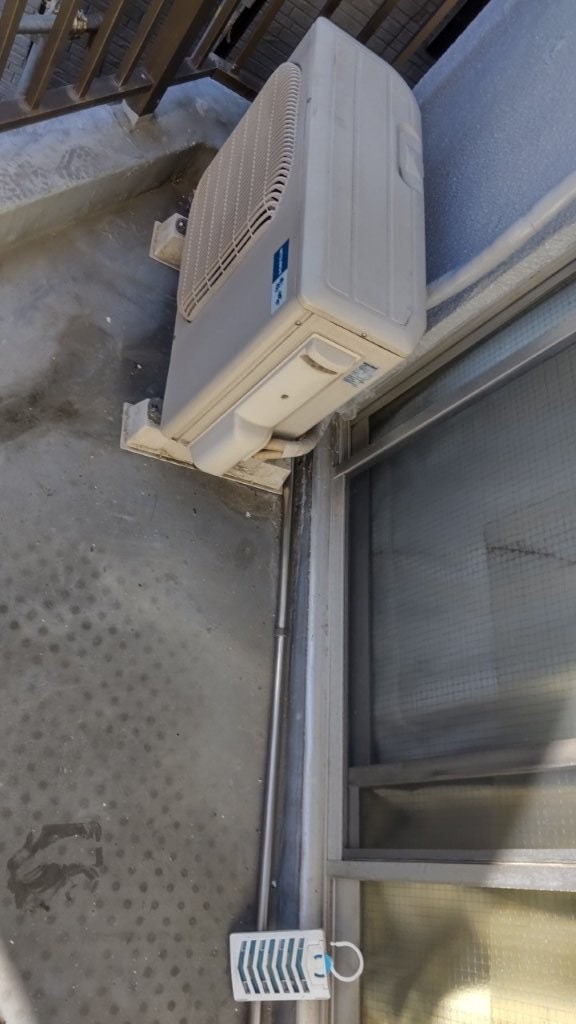 - 室外機周辺や手すり根元に汚れが集中している箇所