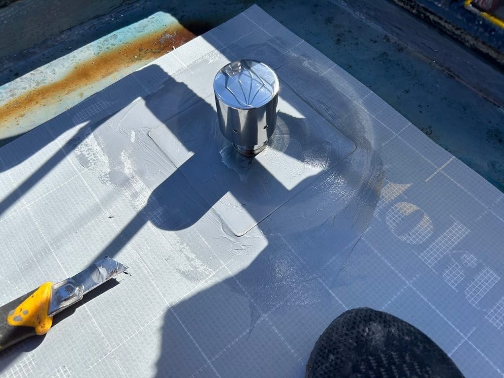 脱気筒まわりは、特に膜厚を意識し、立体的に防水層を形成しています。