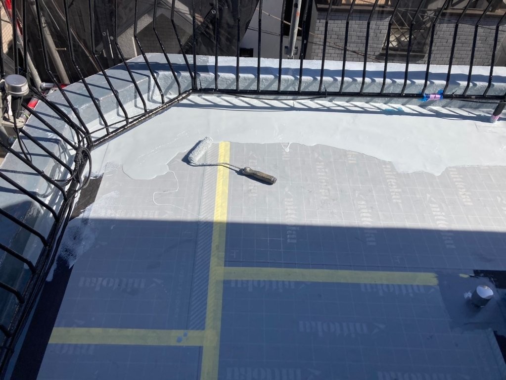 最後にトップコートを塗布し、防水層を紫外線・摩耗から保護します。