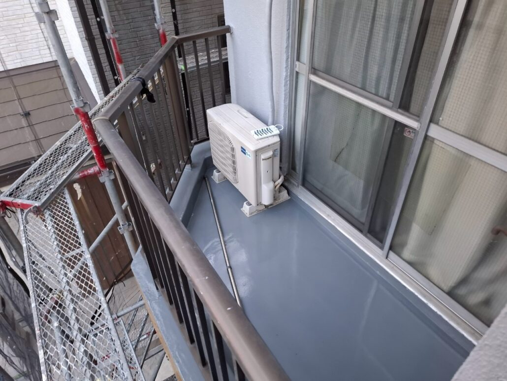 【東京都足立区】賃貸マンション ベランダ・バルコニー防水工事|通気緩衝工法によるウレタン防水で漏水リスクを根本対策