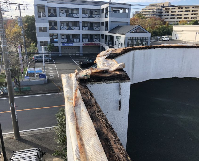 防水シートもめくれてしまっており、木が腐ってしまっていのが分かりますよね。